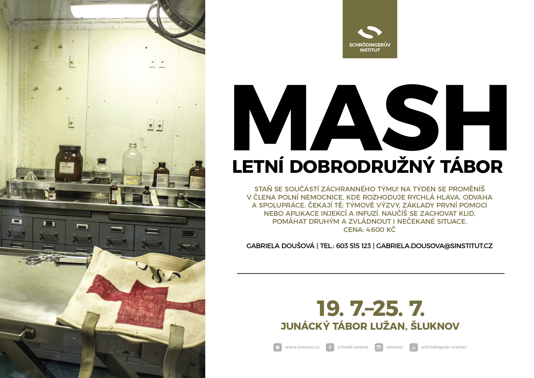 Staň se součástí záchranného týmu! Na týden se proměníš v člena polní nemocnice, kde rozhoduje rychlá hlava, odvaha a spolupráce. Čekají tě: týmové výzvy, základy první pomoci nebo aplikace injekcí a infuzí.