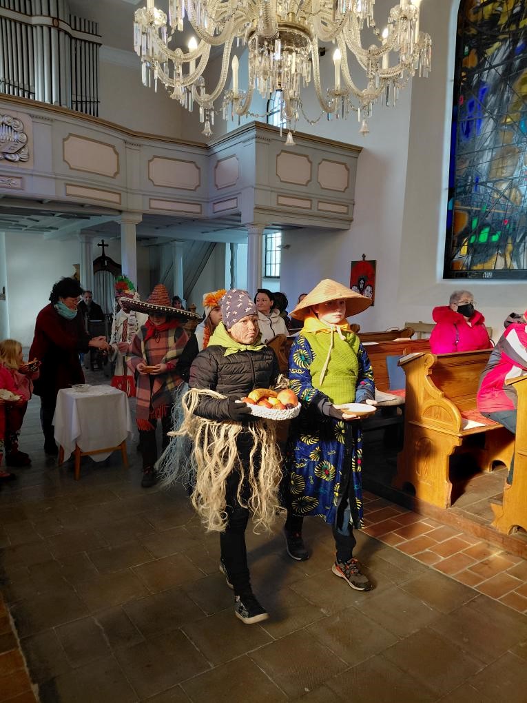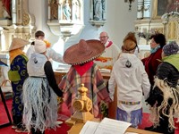 Také nacvičovaly písně a připravovaly oblečení k této akci. V neděli při bohoslužbě děti zpívaly nacvičené písně a v závěru prodávaly účastníkům misijní koláče. Celkem utržily částku 7.060,- Kč. Tyto peníze jsme obratem zaslali na biskupství jako misijní sbírku.