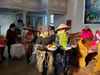 Také nacvičovaly písně a připravovaly oblečení k této akci. V neděli při bohoslužbě děti zpívaly nacvičené písně a v závěru prodávaly účastníkům misijní koláče. Celkem utržily částku 7.060,- Kč. Tyto peníze jsme obratem zaslali na biskupství jako misijní sbírku.